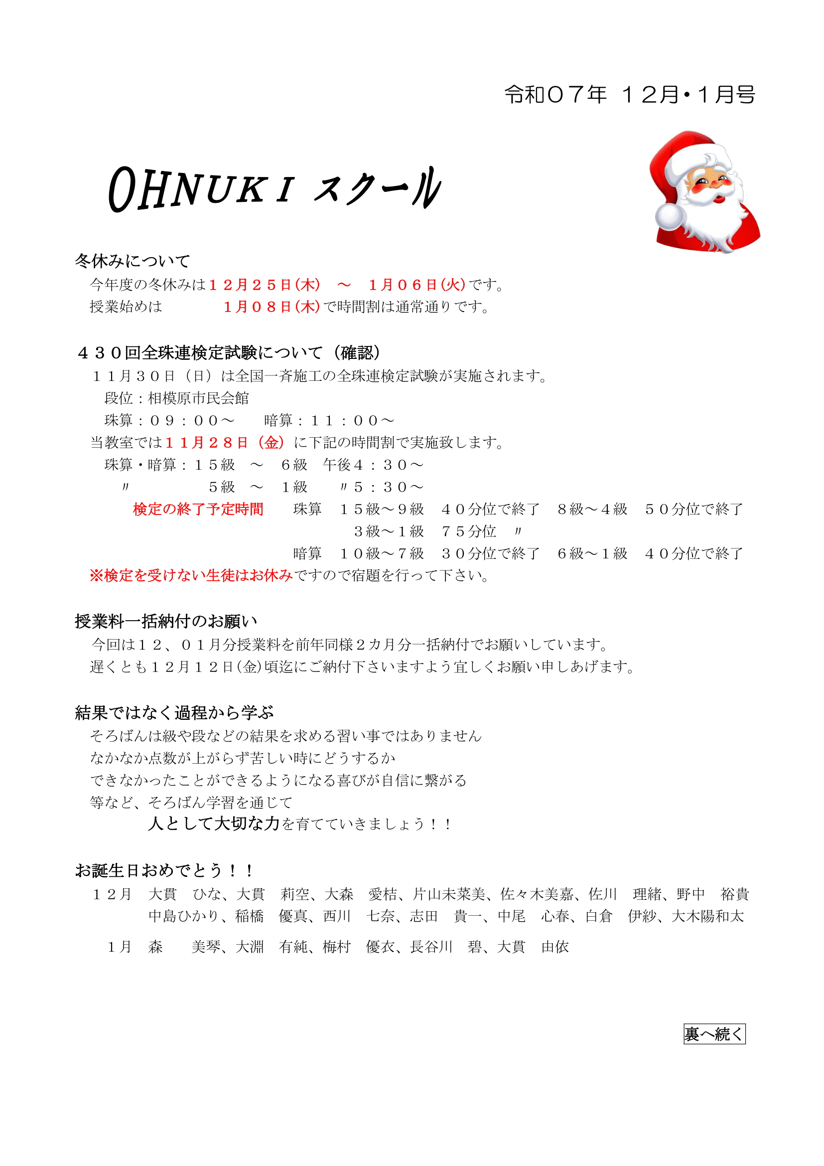 大貫スクール 12月・1月号