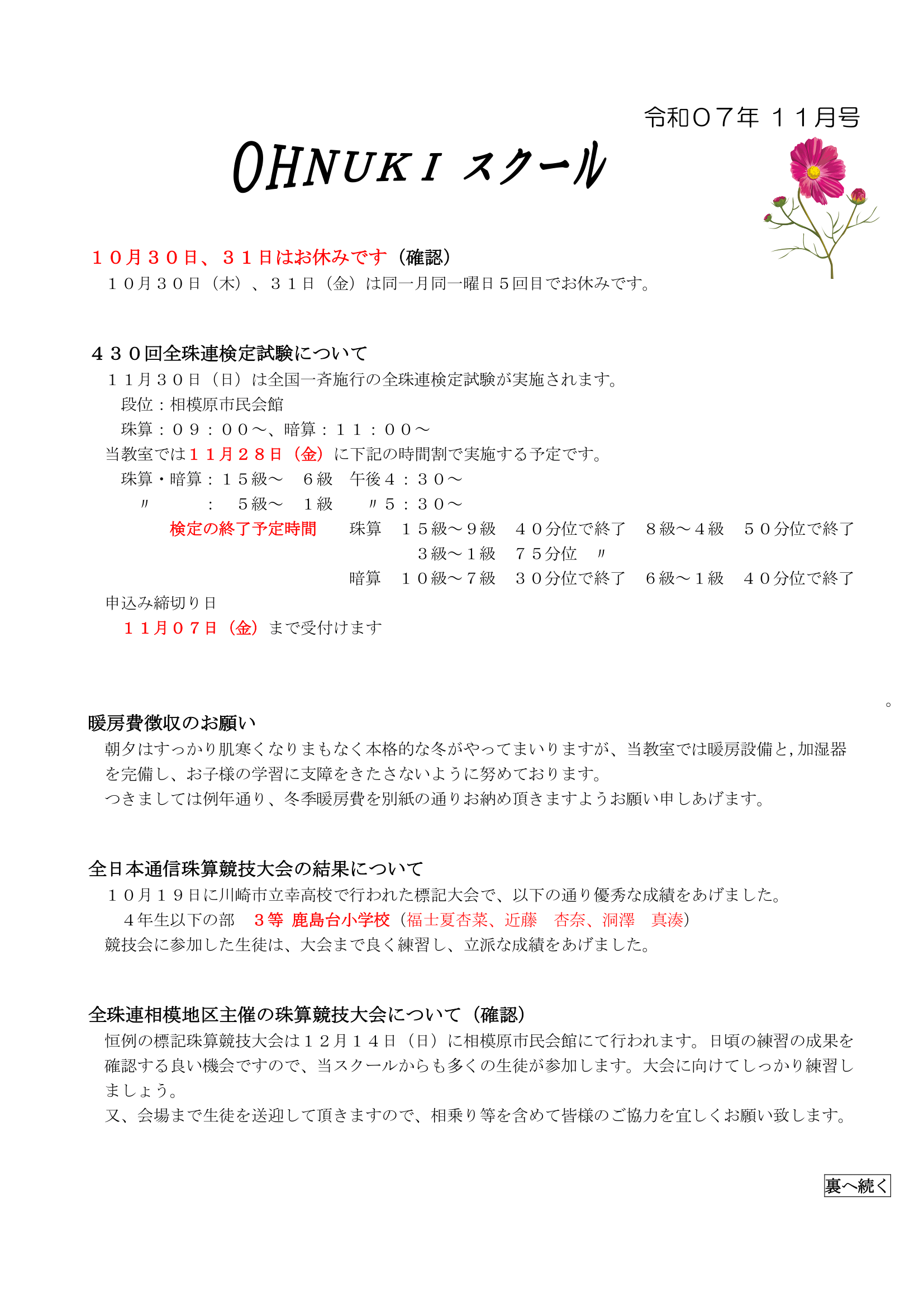 大貫スクール 11月号