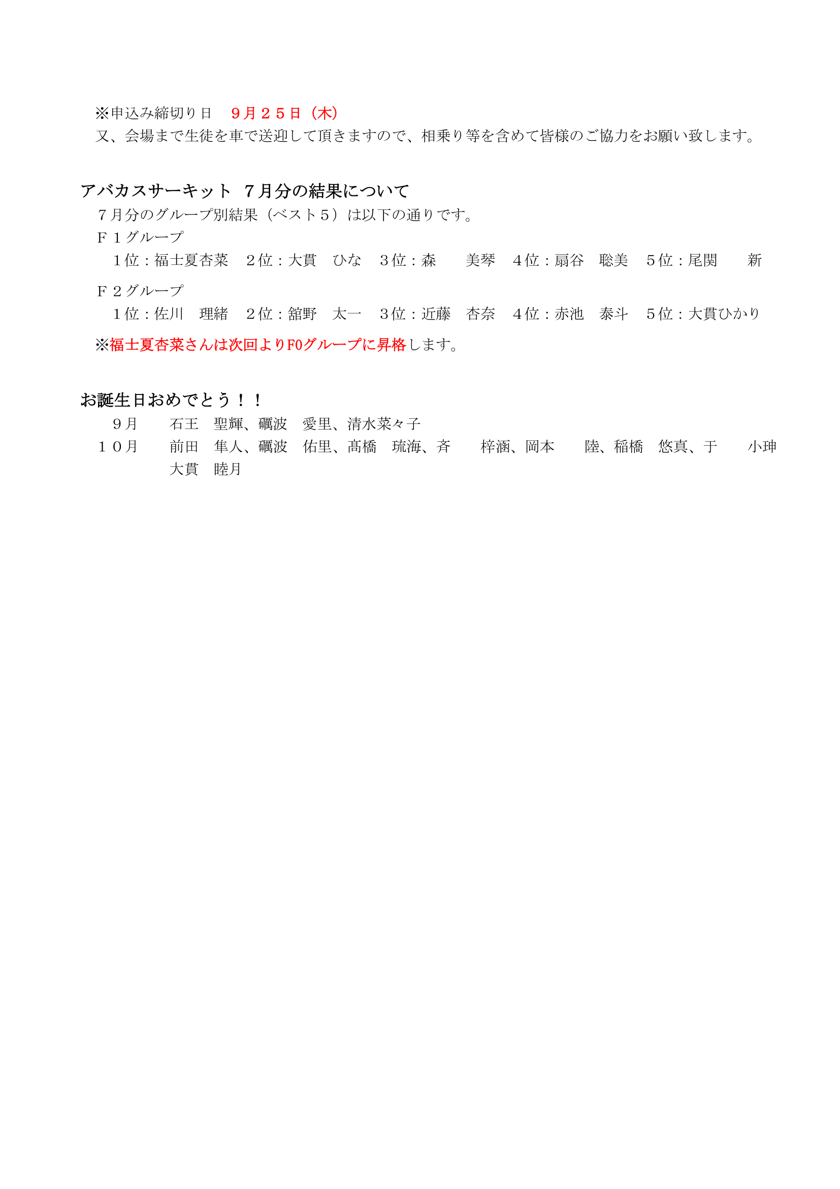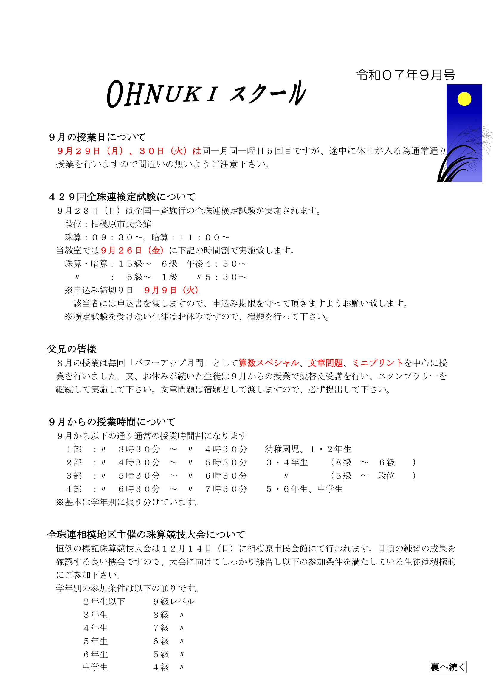 大貫スクール 9月号